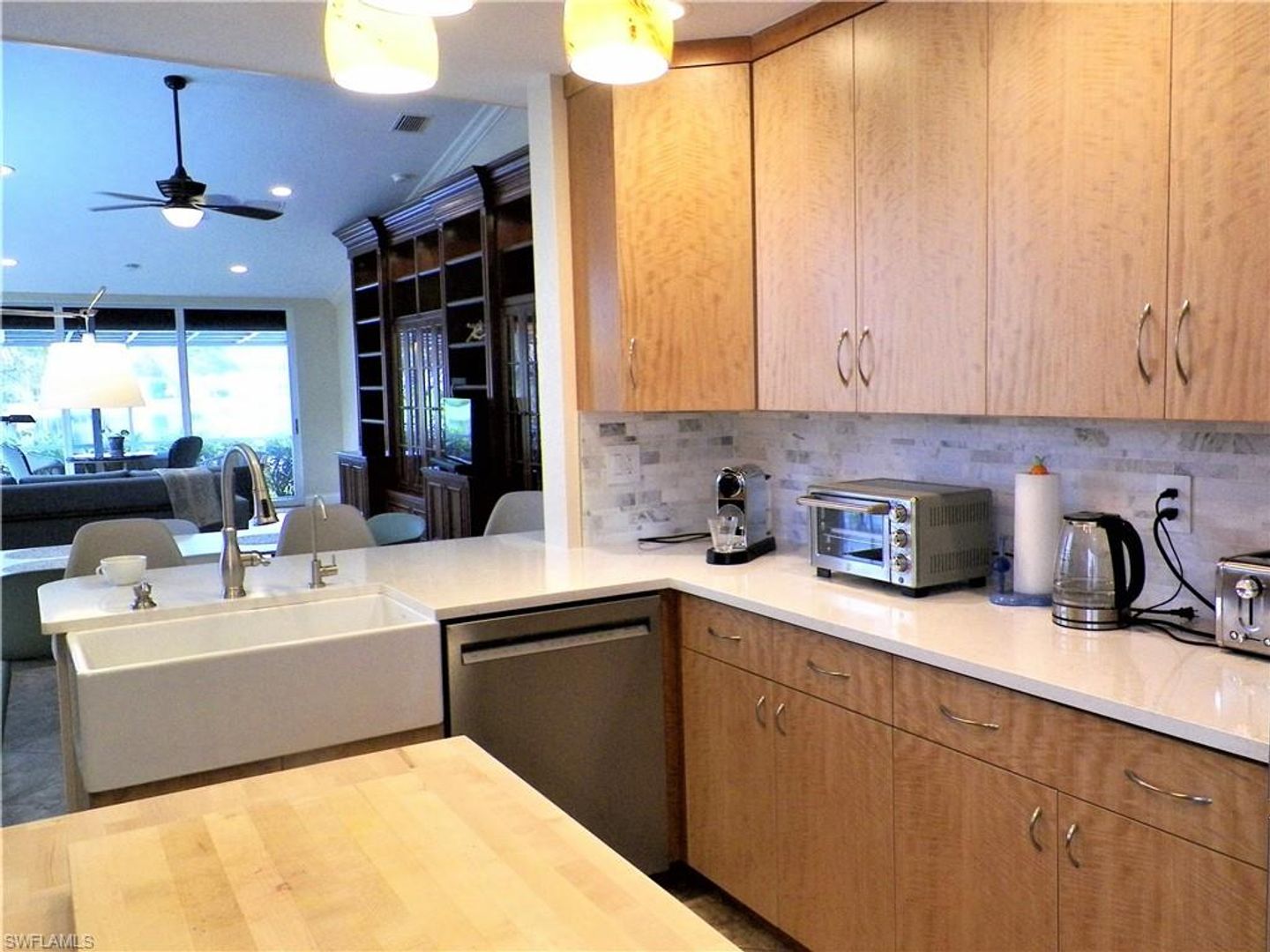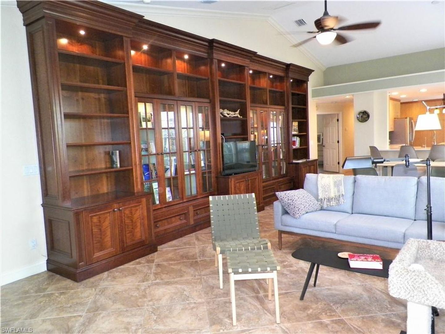 Available for off season or annual rental! Beautifully furnished 3 bedroom villa with 2 car garage in the Walden Oaks! Absolutely stunning lake view from your lanai. This home boasts gorgeous custom cabinetry throughout and high end Italian tile. The kitchen has quartz countertops, a farm-style sink, floor to ceiling pantry with pull out shelves, menu desk, and moveable island. The private Lanai looks out to your small boat dock on the lake. Master Suite with bay window has 2 walk-in closets and spa-like bath with double vanities, walk-in shower and soaking tub. One of the guest bedrooms can be turned into an en-suite bedroom by closing off the the guest bath. Laundry room Two car garage provide additional storage space. However, with this villa it's really all about the view. If you enjoy wonderful sunsets, the sound of the birds, and having your own piece of Paradise you'll love this home. Convenient North Naples location gives you access to shops, restaurants and beaches in minutes.