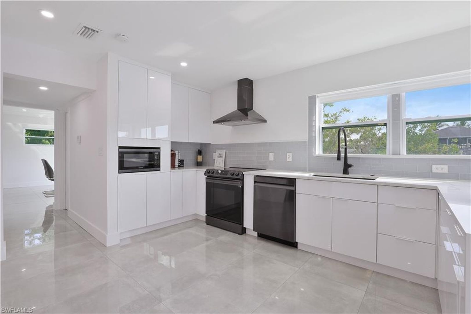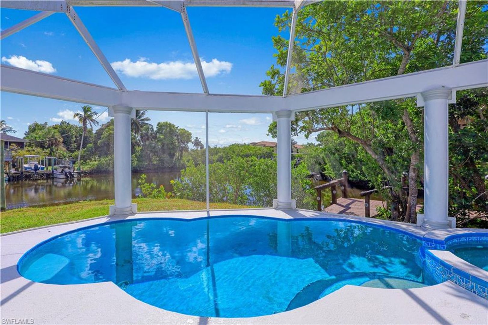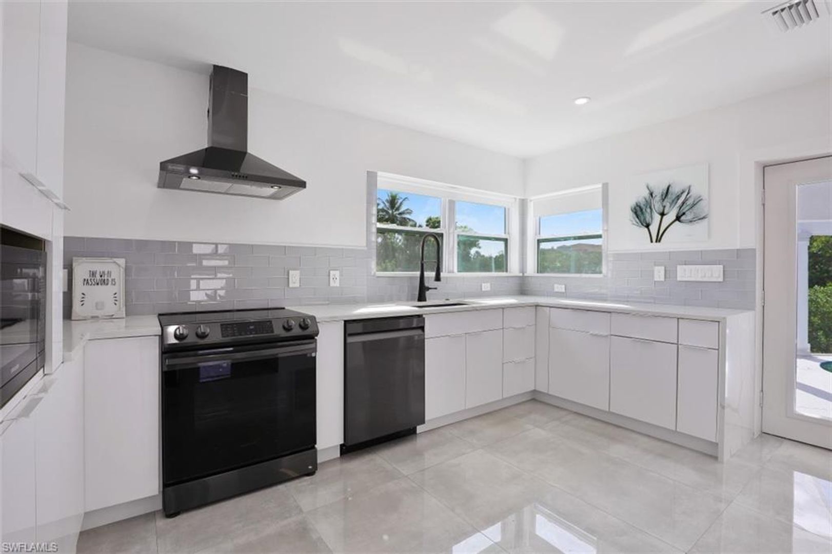 Absolutely stunning and completely remodeled 3 bedroom, 4 bath contemporary waterfront home with spa/pool and a coveted SW exposure as well as a boat dock! Call this ultra sleek, light, bright and sun filled home yours this winter season. NO association approval required. In the heart of Bayshore Arts District. According to Gulfshore Life this is "Florida's Coolest New District". Walk to Celebration Food Park , Wine Loft as well as many other laid back and charming restaurants and cafes. Incredible location close to 5th avenue, beaches and Botanical Gardens. Not only is there a 30 ft. boat dock but also a boat ramp for the boating enthusiast. On a deep water canal within Minutes to Naples Bay and Gulf and no bridges. Photos don't show it yet but there is also a brand new roof. Also pet friendly! Three Tv's: Living room, kitchen and lanai.