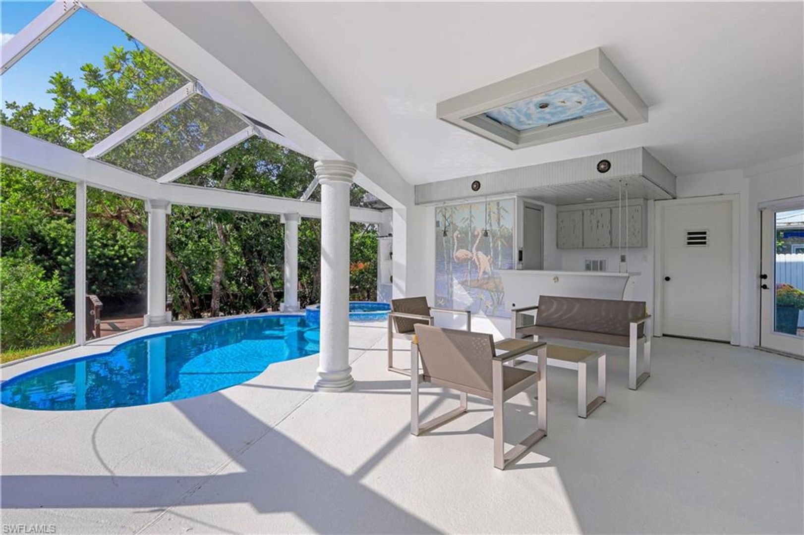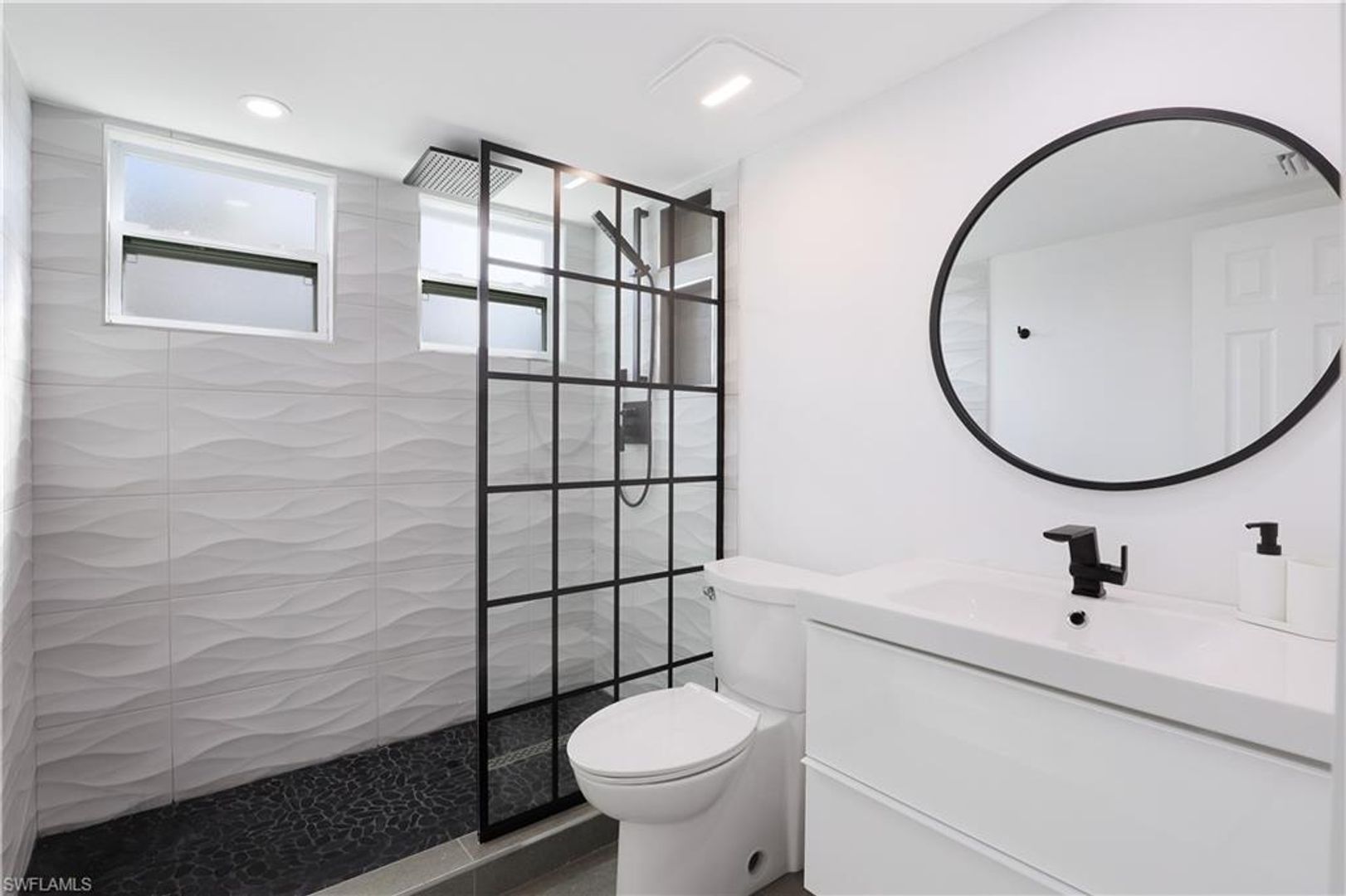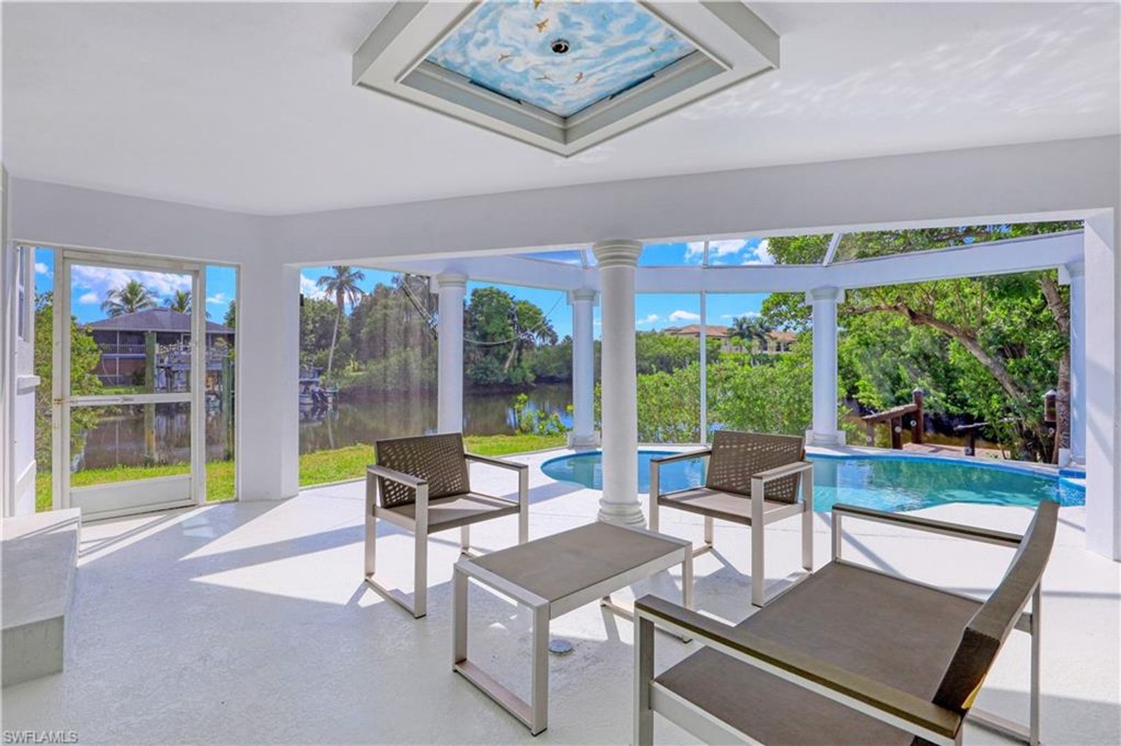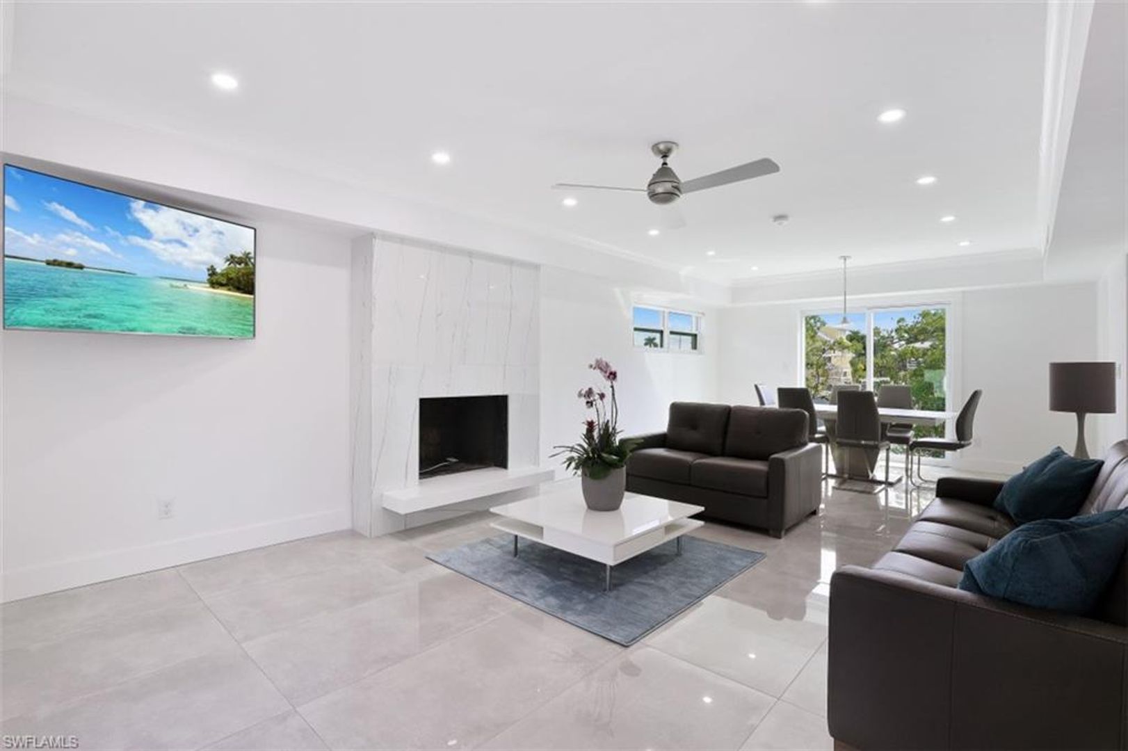 Absolutely stunning and completely remodeled 3 bedroom, 4 bath contemporary waterfront home with spa/pool and a coveted SW exposure as well as a boat dock! Call this ultra sleek, light, bright and sun filled home yours this winter season. NO association approval required. In the heart of Bayshore Arts District. According to Gulfshore Life this is "Florida's Coolest New District". Walk to Celebration Food Park , Wine Loft as well as many other laid back and charming restaurants and cafes. Incredible location close to 5th avenue, beaches and Botanical Gardens. Not only is there a 30 ft. boat dock but also a boat ramp for the boating enthusiast. On a deep water canal within Minutes to Naples Bay and Gulf and no bridges. Photos don't show it yet but there is also a brand new roof. Also pet friendly! Three Tv's: Living room, kitchen and lanai.