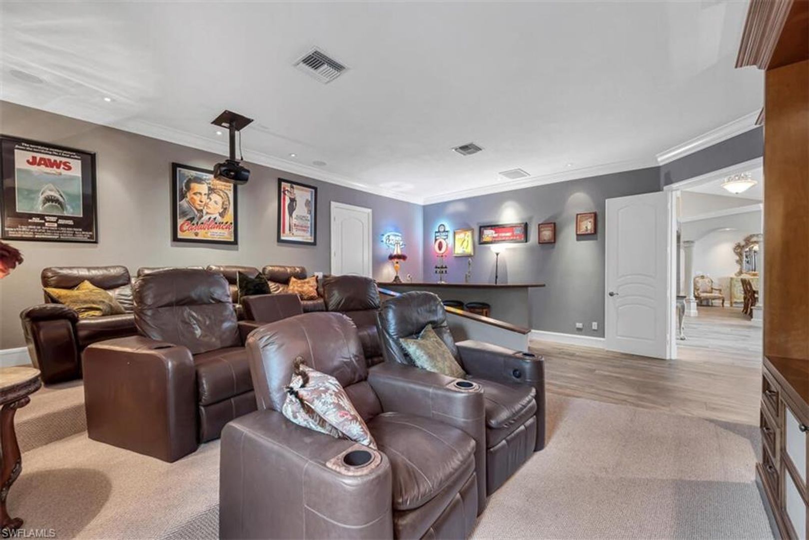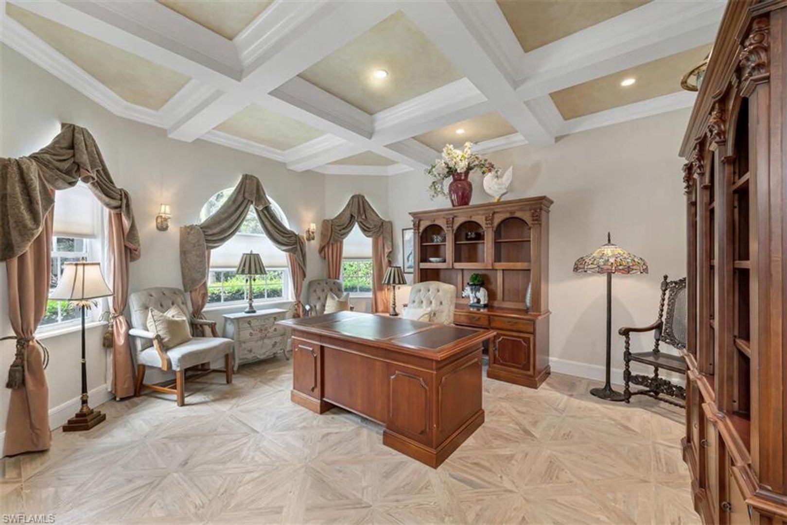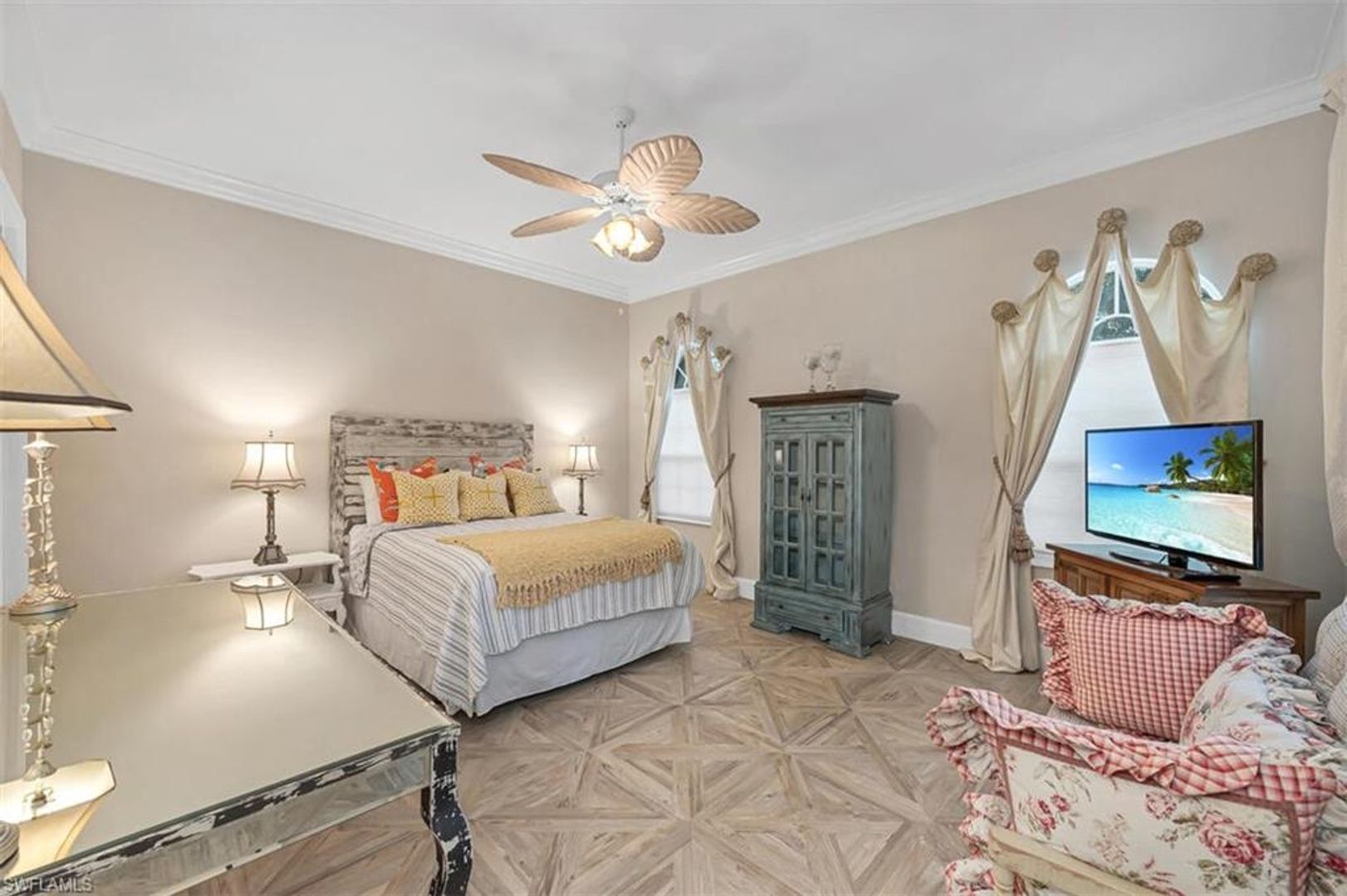 Available Off-Season or as a Seasonal rental! Call for weekly rates! This is a large estate pool/spa home situated in the Moorings Area, West of Rt 41, sandwiched between Park Shore and Coquina Sands. The Moorings Neighborhood, a luxury Old Florida and waterfront locale, with beautifully canopied trees and quiet streets near dining, entertainment and shopping. The Moorings offers a Private Beach for Mooring residents within a bike ride distance from this home. Built in 2003 by high end builder and has been maintained to a high level. This home features 4 bedrooms (king, queen, queen and 2 twins), a study/office, deluxe TV room, and a huge bonus/playroom over a 3-car garage. This home boasts soaring ceilings, Italian tile throughout, custom molding and has a gourmet kitchen to match. Professionally managed, located equidistant from The Mercato and 5th Ave S. Annual tenants to pay all utilities. Three-month minimum rental required for private beach access.