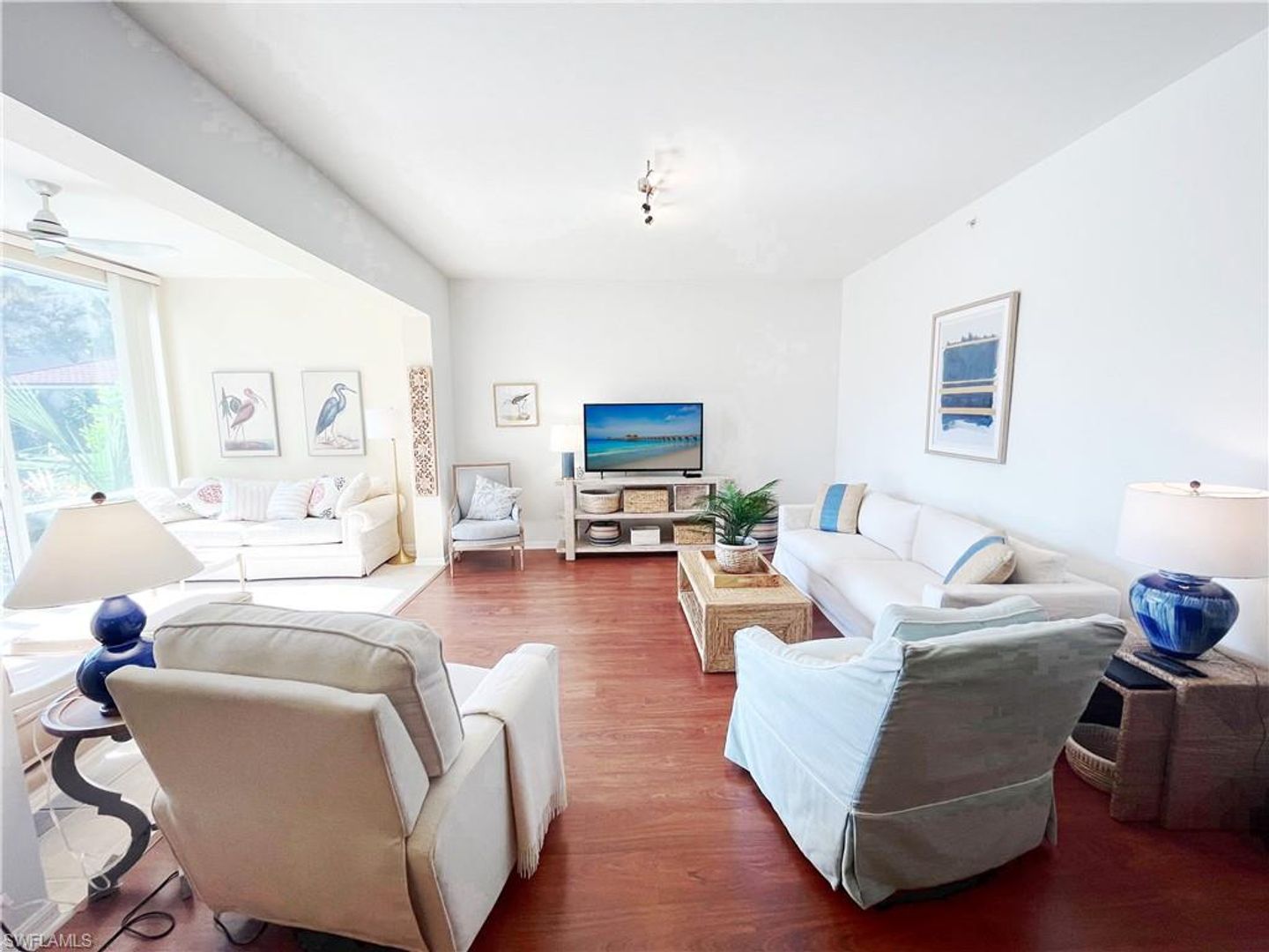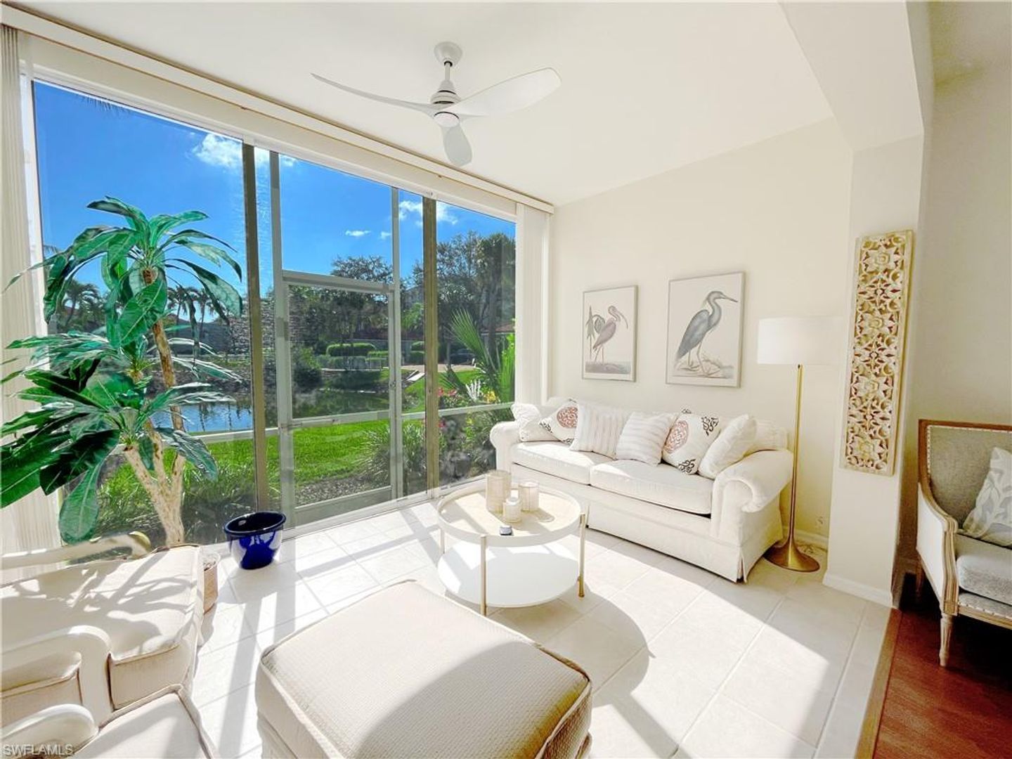 First floor seasonal Rental available in Pelican Marsh! Owner has just redecorated. Do not miss this comfortable 3 bedroom, 2 bath with over 1800 sq. ft. of living area and attached garage. This residence has an enclosed lanai and sliders open to view the pond and neighborhood pool. Pelican Marsh is the ideal location in North Naples located near Vanderbilt Beach and upscale shopping at Mercato and Waterside. Golf? Of “course” – it’s just a 5 minute drive to the famous Tiburon Golf Club home of several PGA and LPGA events. Naples’ famous Fifth Avenue and Third St restaurants and shops are just a short 15 minute drive! Enjoy all the amenities Pelican Marsh has to offer including a 3 minute walk to the community center with tennis, bocce, pickleball, a fitness center and more! Three TV's: Living room, master bedroom and guest bedroom.