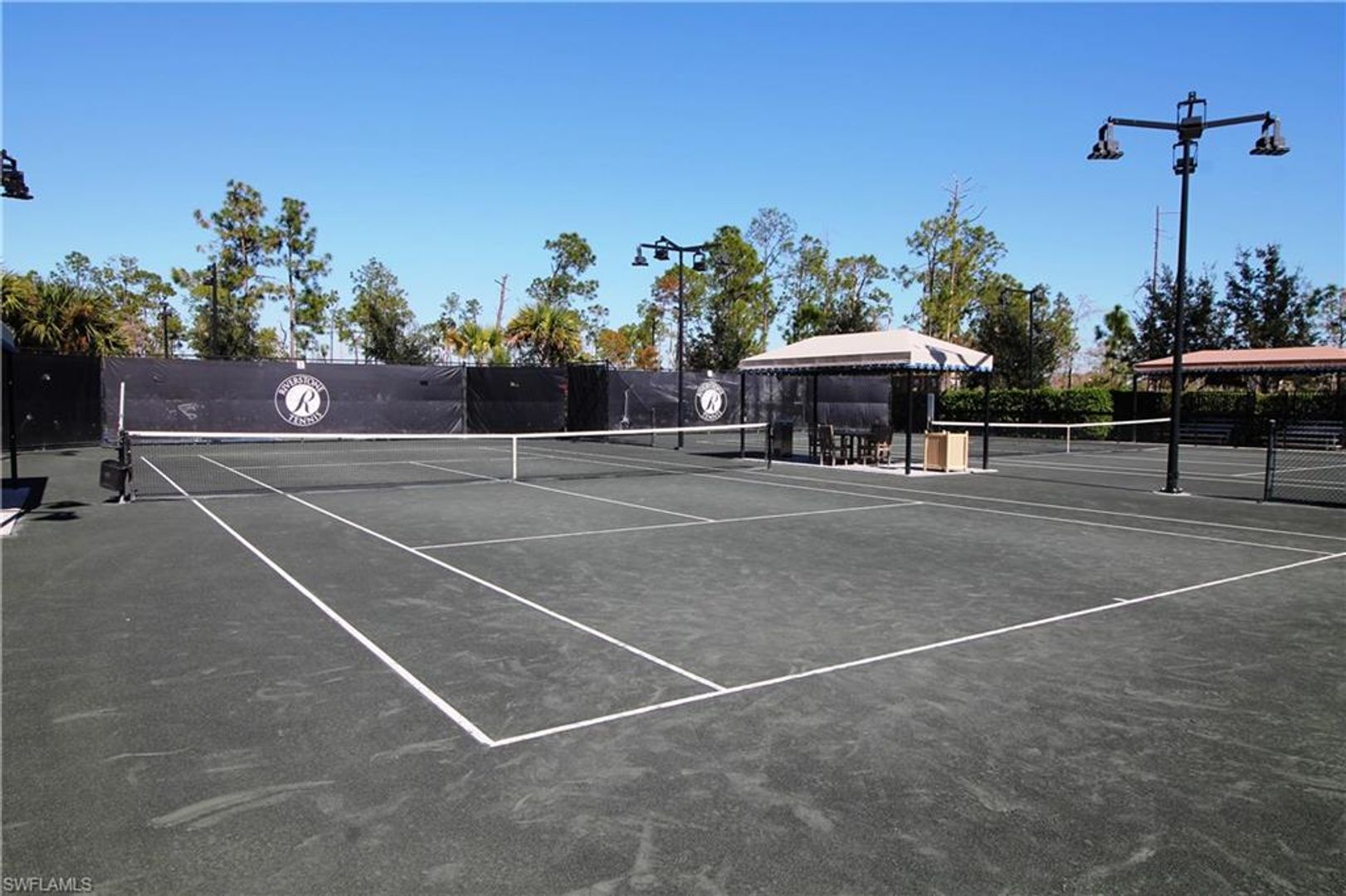 Available off season 2026 and seasonal 2027. Stunning pool home in Riverstone. 3+den/2.5 bath home with custom pool (salt water system) and water feature with child safety fence. Enjoy lake views from the extended brick paver lanai. Inside, latest architecture, open floor plan, and loaded with subtle custom features. Split bedroom floor plan and a Den for all your business needs. Riverstone is a low-density community with endless amenities for the tenant's enjoyment including a resort style pool, lap pool, water play area, lighted HarTru tennis courts, tot-lot, cabana, indoor sports complex, field for play, full court basketball and more. New carpet in all bedrooms and new hardwood floor in Den. Four Tv's: Living room, Den, Master bedroom and Guest bedroom.