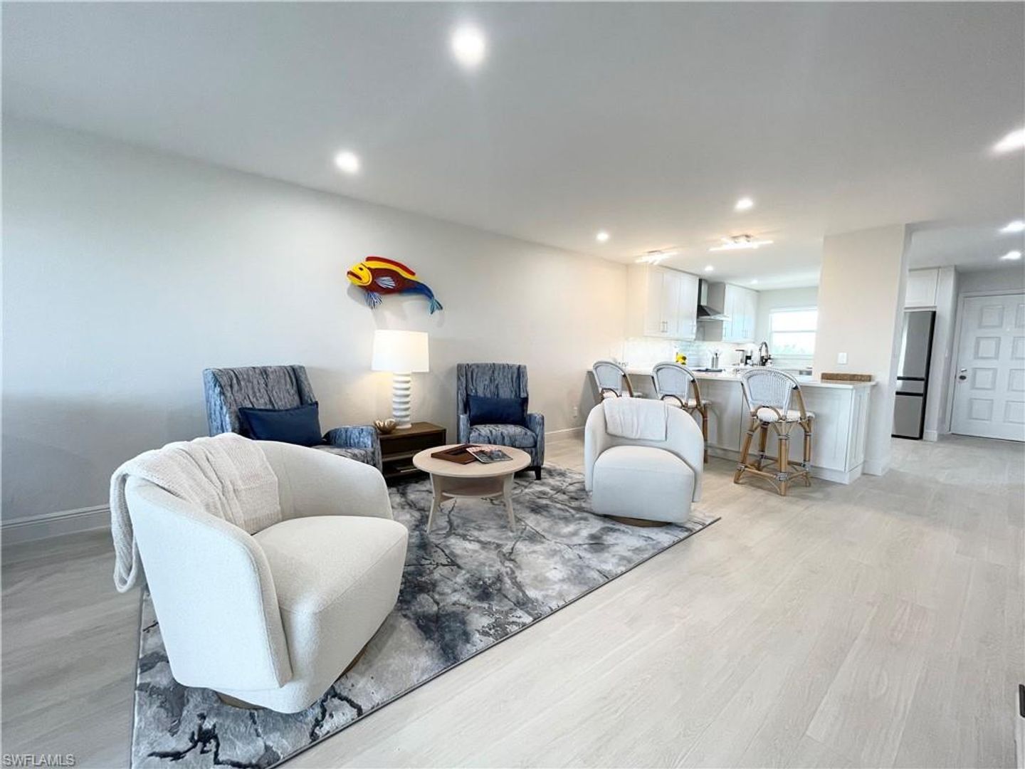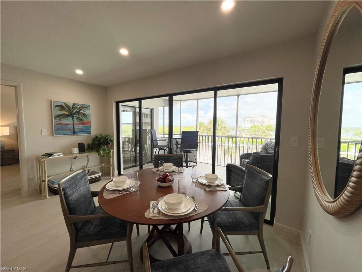 Welcome to the Anchorage at Vanderbilt, located near the mouth of the Cocohatchee River and calming water views of mangroves and sunsets with dolphin and manatee watching included. Inside, a driftwood theme that has been carried throughout the two bedrooms and bathrooms. Open style Living area, with all the creature comforts and cozy linens and bedding. This home has a fully stocked Kitchen, and a Clear view of the Gulf of America that will keep you peeking out across the coastal view off of the screened in Lanai. The Anchorage is a gated community, with one private covered parking, and the ability to rent a boat slip. Lovely fun pool and Tiki Hut also. Very Close to All shopping, Mercato, and beaches, and what North Naples offers from this great locale. Small pets on approval.
